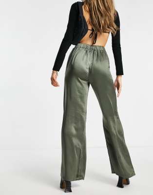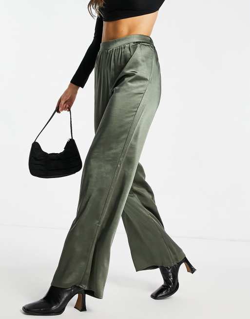 Olive green on sale silk pants